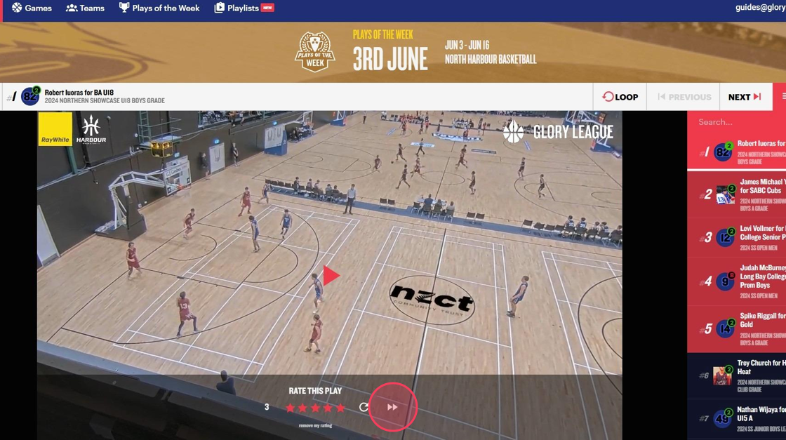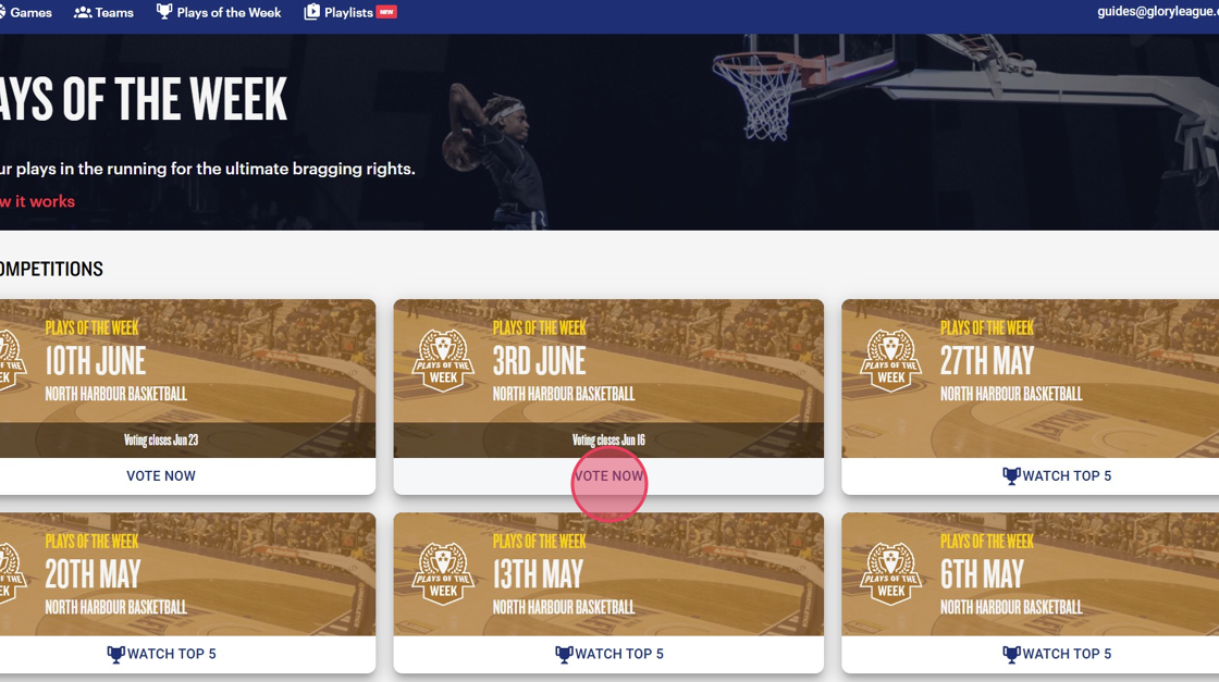 Your nominated clips will automatically be added to the Plays of the Week page. Here, other viewers can watch and rate them by clicking the star button. You can vote on as many clips as you like, but only once per clip.