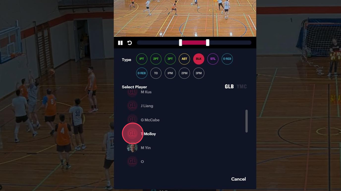 1. While watching the game in your browser window click the "STAT+" button when you see the highlight happen.