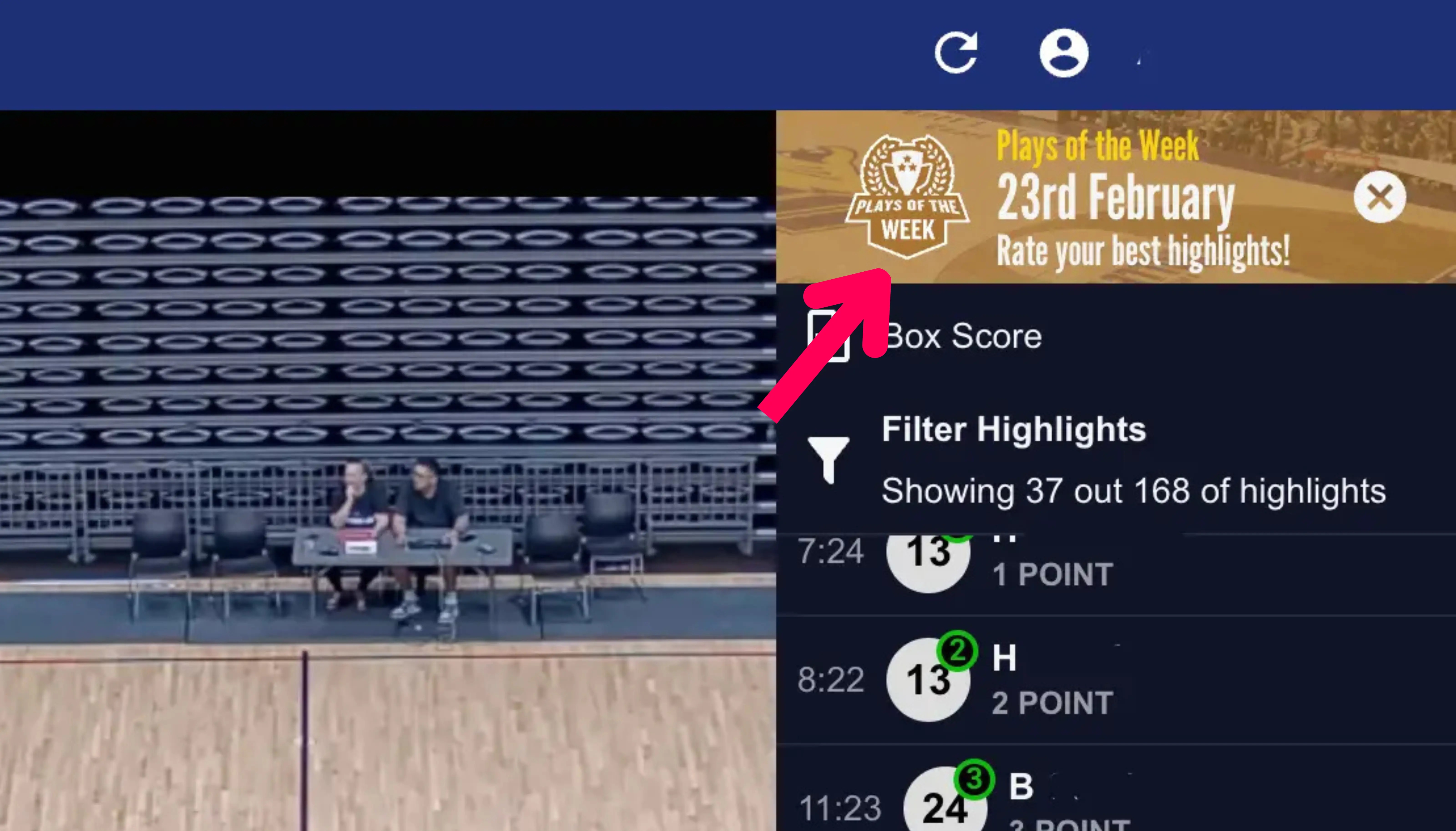 Once you’ve nominated your highlight, you can head to this week’s Plays of the Week by clicking the banner at the top of the highlights bar.