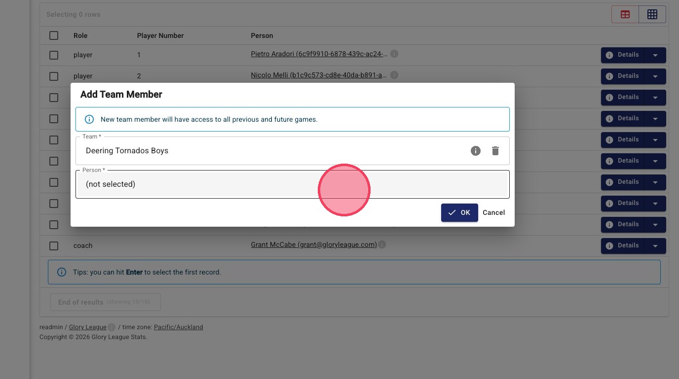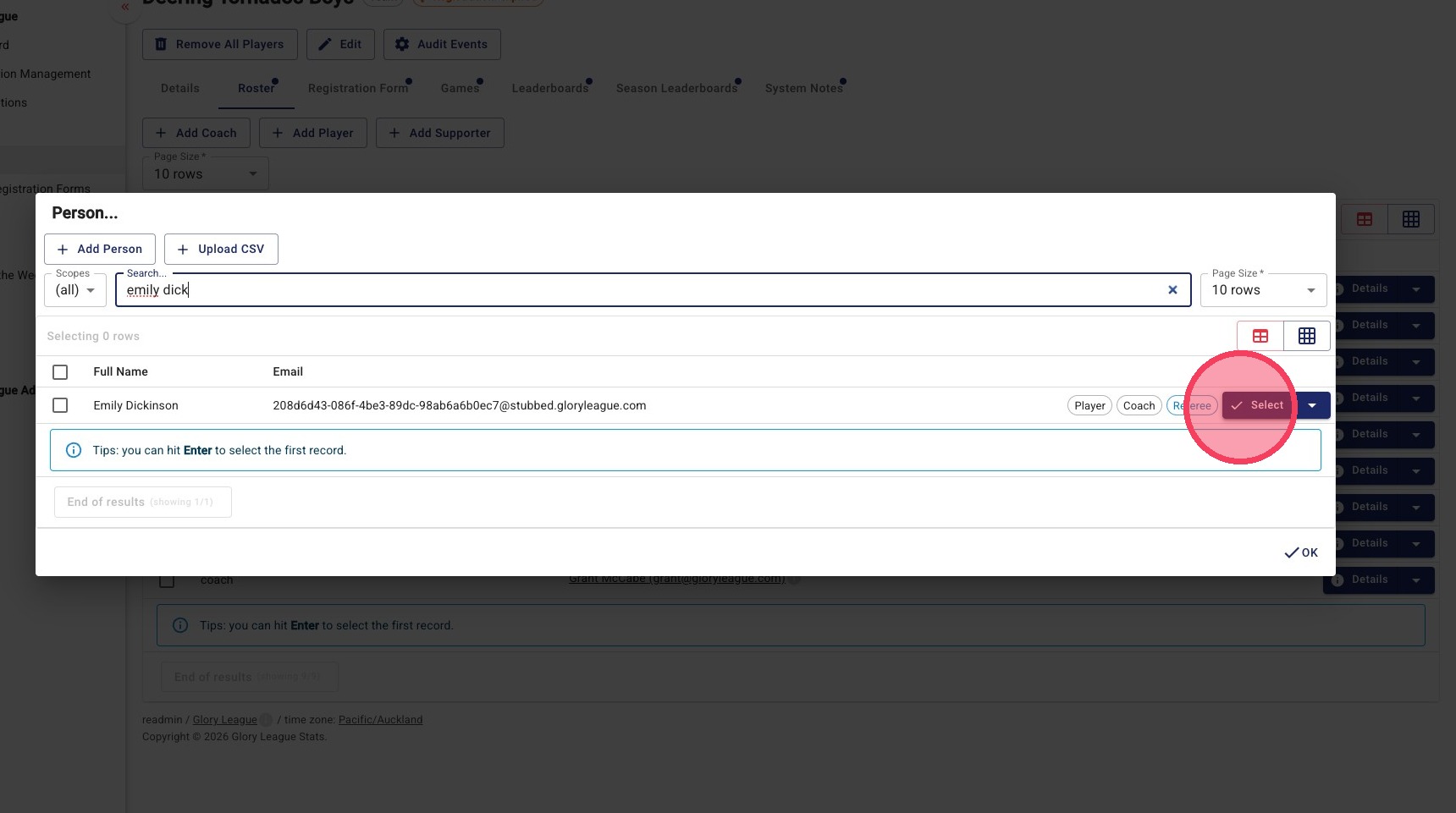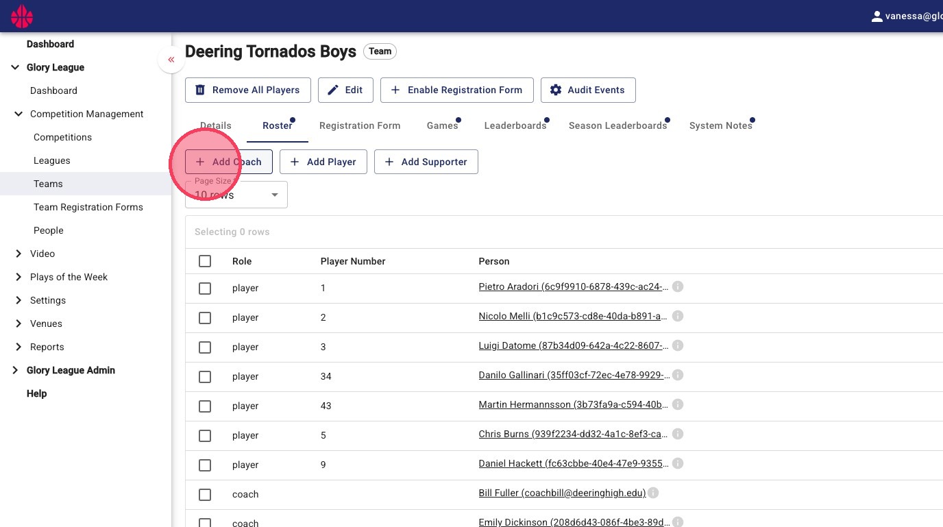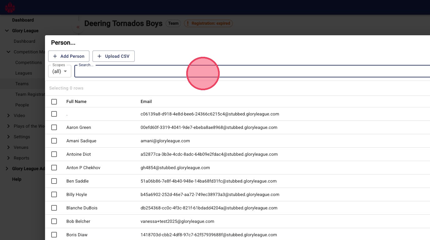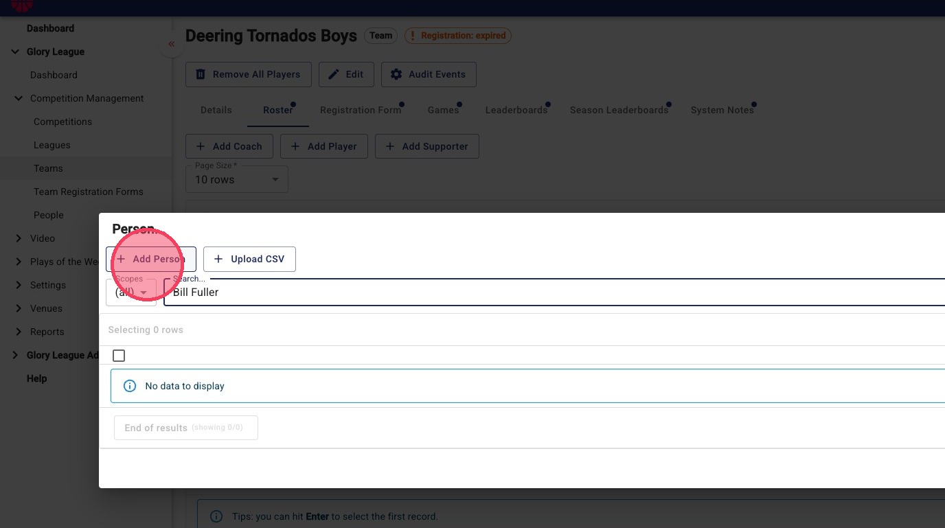 8. If no entries come up for the coach or if the email does not match click "Add Person"