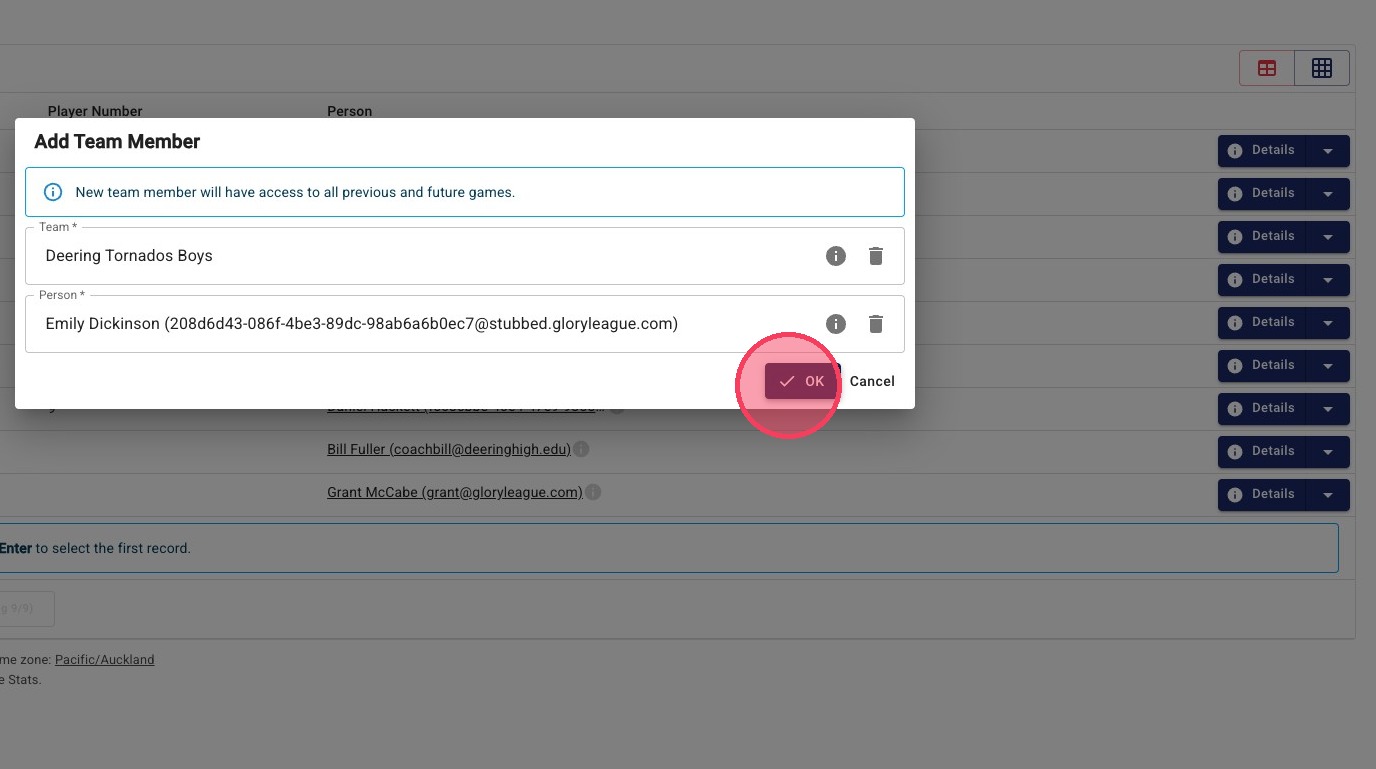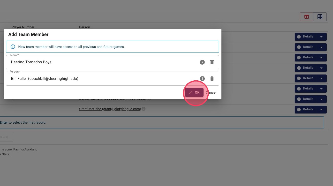 11. Confirm you are adding this coach to this team by clicking "OK"