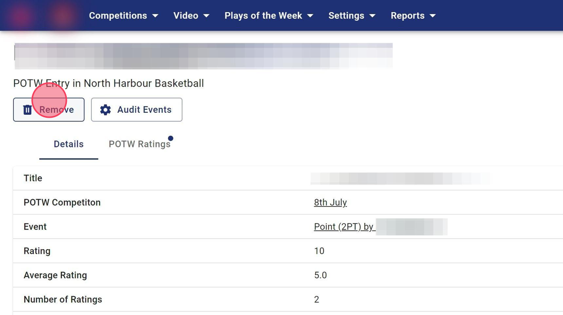 You can remove a highlight from the Plays of the Week at any time through the admin portal.