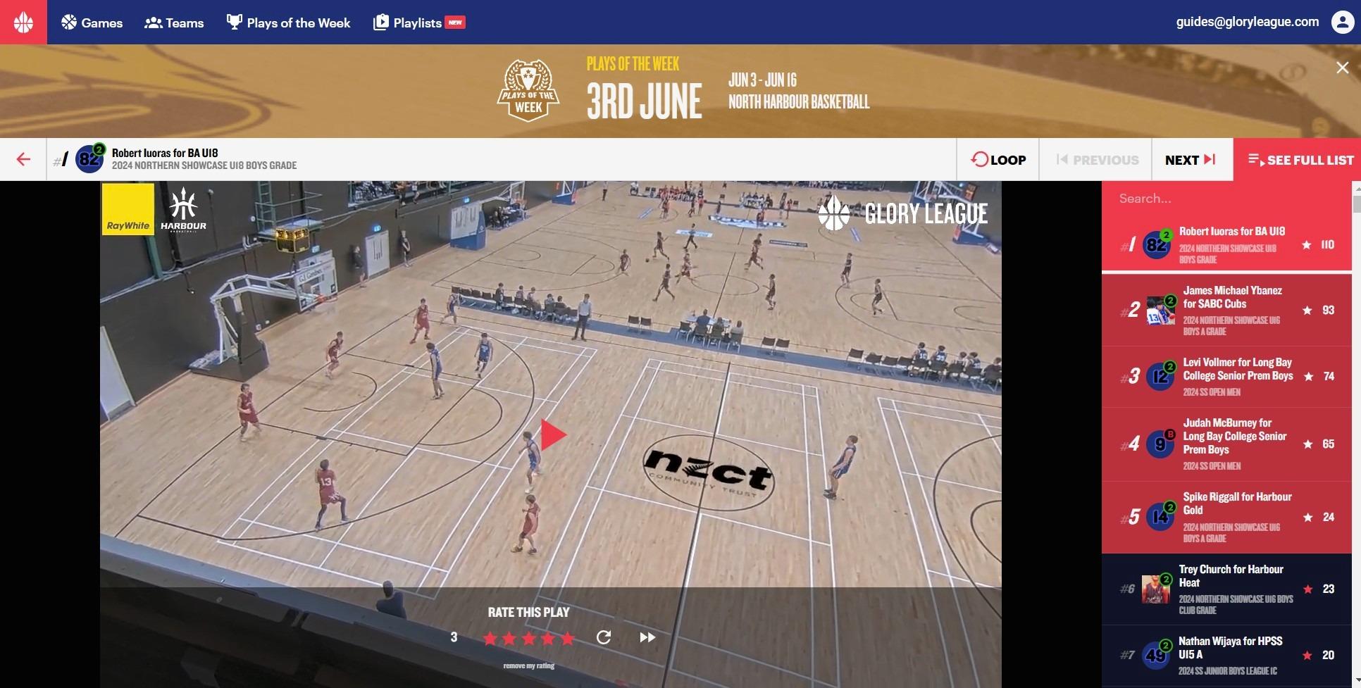 Your nominated clips will automatically be added to the Plays of the Week page. Here, other viewers can watch and rate them by clicking the star button. You can vote on as many clips as you like, but only once per clip.
