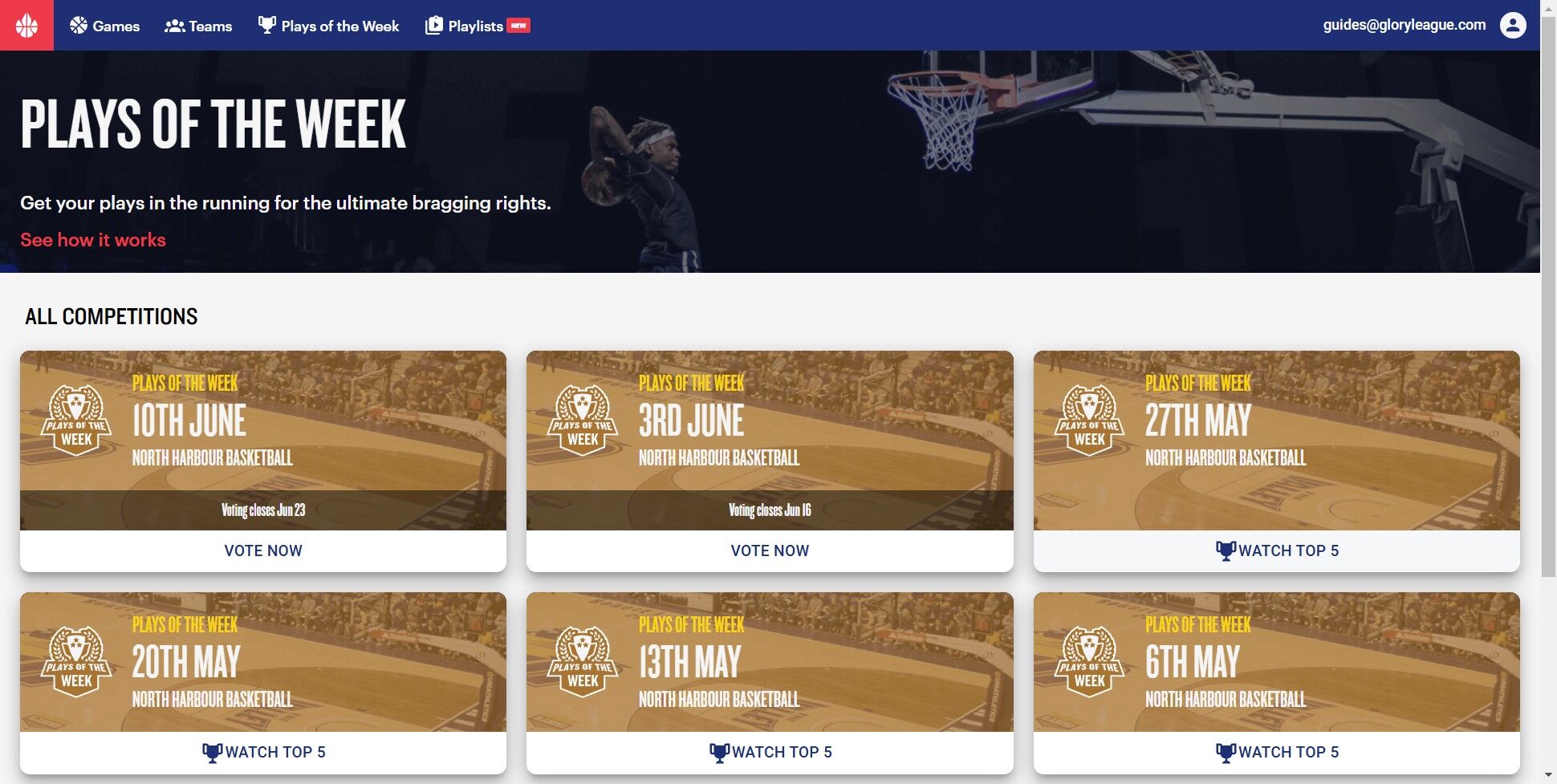 1. To see the Top 5 clips from a previous week click "Watch Top 5" under the date